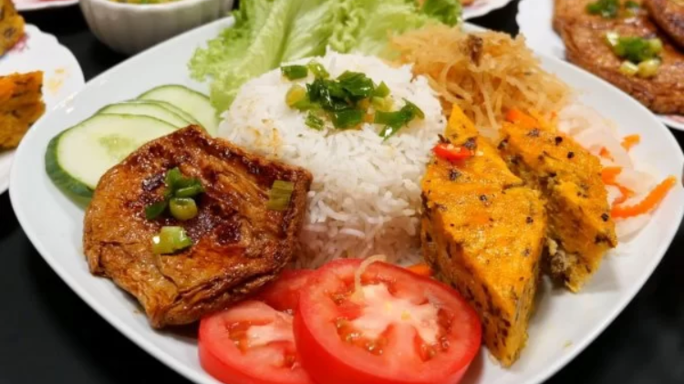 Em vez de costelas grelhadas e ovos, Com tam chay é utilizado tofu, cogumelos salteados e salsicha vegetariana - perfeito para quem segue uma dieta de Kosher se você escolher um restaurante de boa reputação.