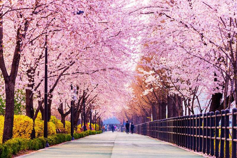 A primavera, de abril a junho, é uma época perfeita para visitar Busan e ver as flores de cerejeira intocadas na rua Namcheon-dong Cherry Blossom, na rua Moontan perto da praia de Haeundae, na colina Dalmaji, no riacho Oncheoncheon,...