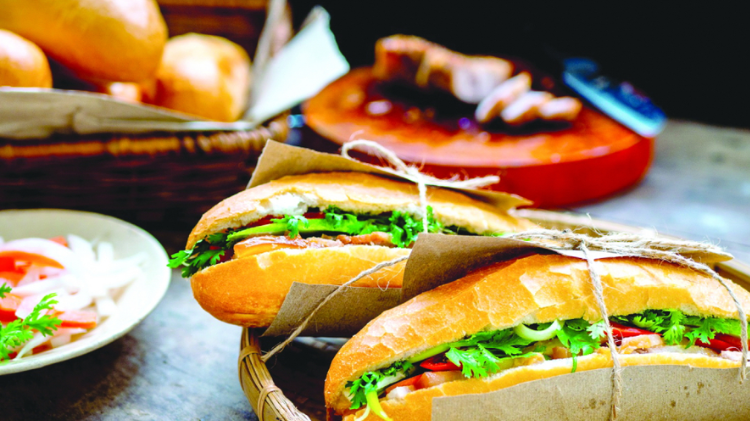 Banh mi aqui é diferente de qualquer outro lugar: crosta crocante, recheios ricos como carnes frias, presunto, carne grelhada, ovos estrelados, servido com pepino, picles, coentros e molho especial. Este é um prato rápido, mas nutritivo, adequado para qualquer refeição do dia.